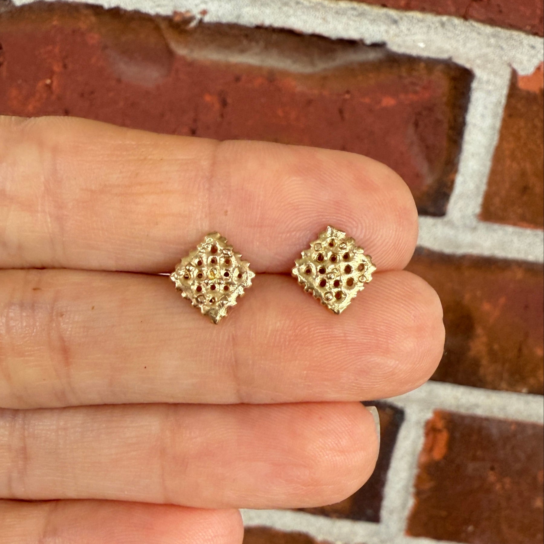 Tiny saltine crackers for your ears! These charming 14k gold studs are full of detail and because they're sold individually they are fun to pair with other gold studs - try it with a gold oyster or a lemon slice!