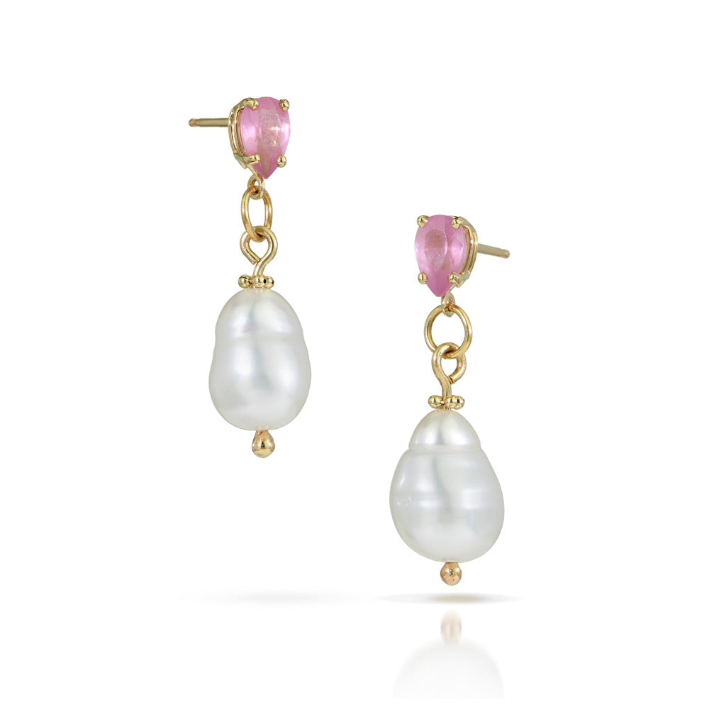 Pink Spinel Studs with White South Sea Keshi Pearls